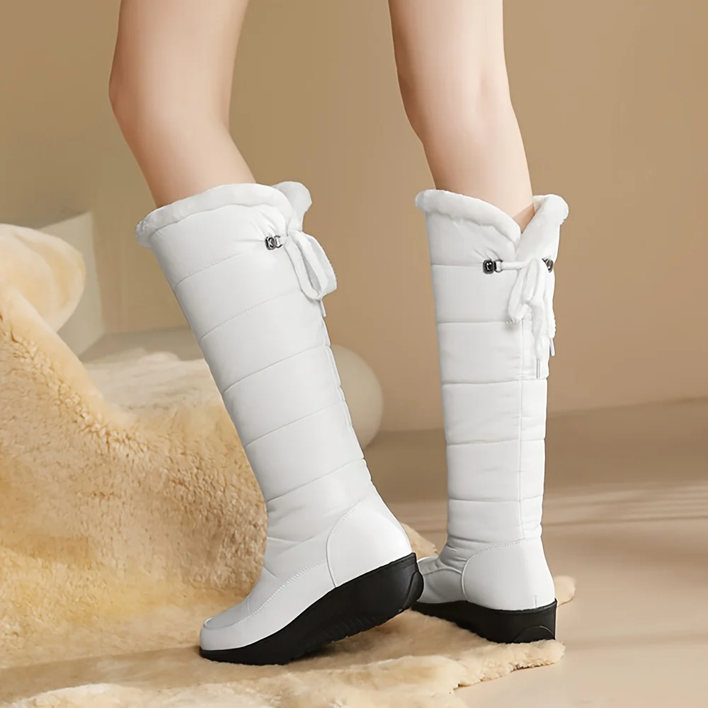 Women's Fuzzy Faux Fur Winter Snow Boots Fashion Platform Wedges Heel Pull On Waterproof Casual Comfy Knee High Boots Woman