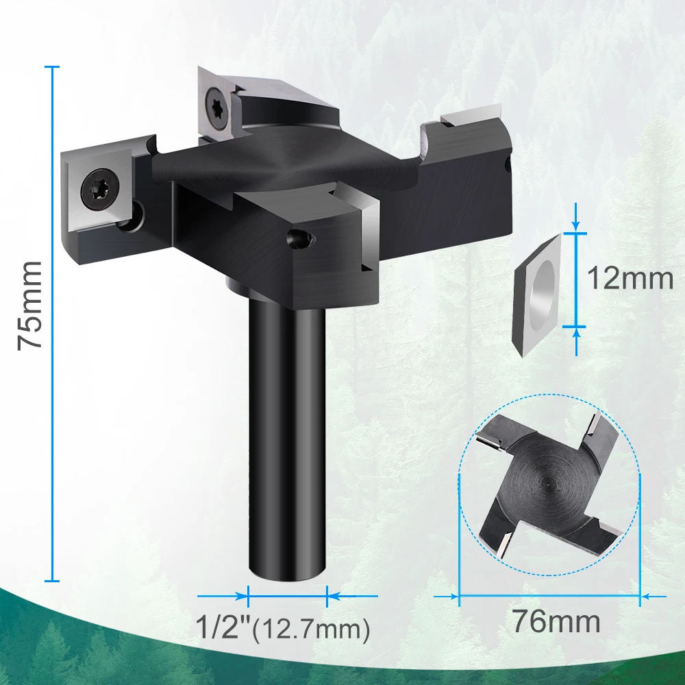 XCAN CNC Spoilboard Surfacing Router Bit 1/2'' Shank Slab Flattening 3" Cutting Dia. 4-Flutes Wood Planer Bit Insert Carbide