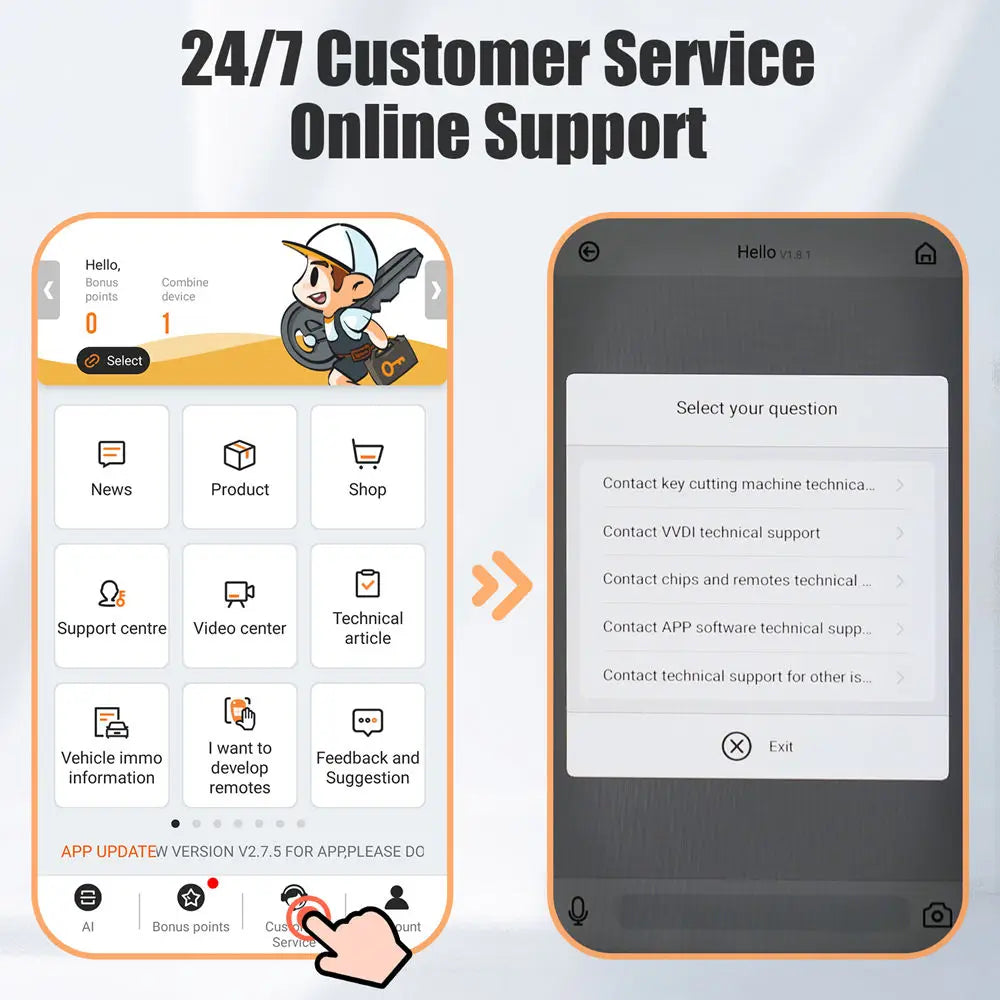 KEY TOOL MAX PRO is a professional all-in-one smart device with multi-function, Bluetooth and WIFI communication interface, which is convenient for connecting and controlling Xhorse key cutting machines. It supports various OBD functions such as vehicle diagnosis, IMMO program, throttle program, TPMS, and maintenance light reset.