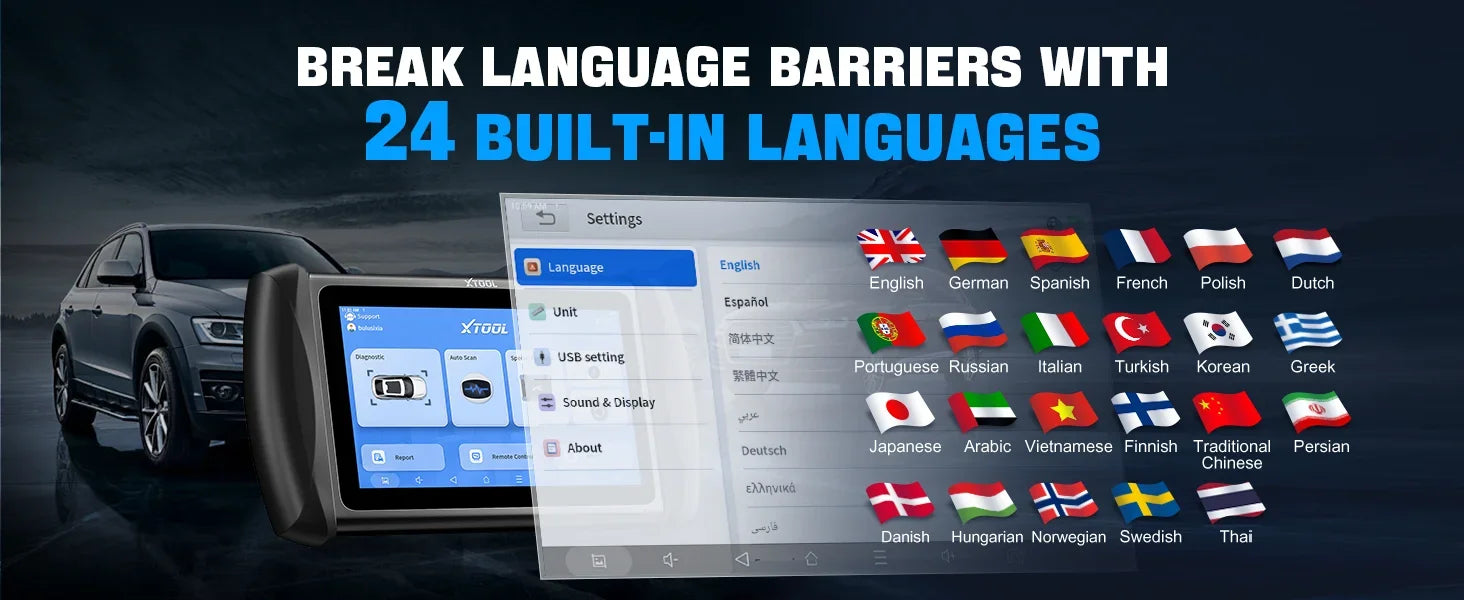 24 Languages: English, Spanish, Indonesian,German, French, Italian, Finnish, Arabic, Japanese, Korean, Polish, Portuguese, Vietnamese, Russian, Danish, Greek, Persian, Hungarian, Dutch, Norwegian, Swedish,Turkish and Traditional Chinese